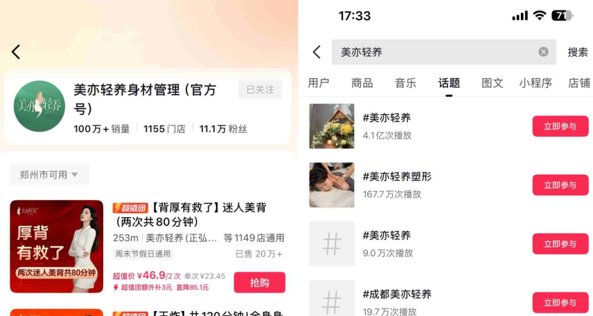 *美亦轻养抖音团单销量突破100万单,话题播放量超过4.1亿
